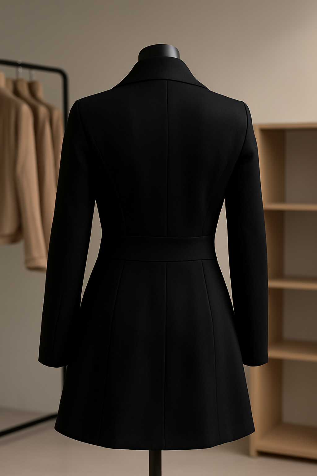 Elegant Black Women's Coat with Tailored Fit and Gold Brooch